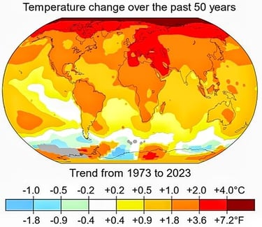 Now, here’s the thing. If you’ve got this far, you will have read my above statement: ‘It’s no surprise that the land is heating more quickly than the oceans since it has a lower heat capacity, i.e. it’s easier to heat up.’ Let’s turn that round. ‘It’s astounding - no, frightening - that the oceans around the UK in June 2023 heated up more than the land.’ Because to raise the temperature of water requires a colossal amount of heat. 90% of the excess heat generated by man’s activities is absorbed by the oceans causing them to warm very slowly. So raising the surface waters by 4-5°C must have involved astronomic amounts of excess heat. If this continues, scientists are concerned that ocean currents may change course. Ocean currents determine our climate.